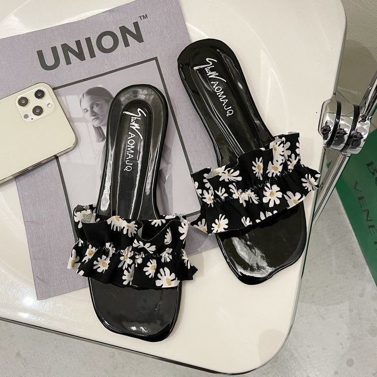 Sandals And Slippers Women's New Floral Flat Bottom Fashion Soft Bottom Women's Shoes